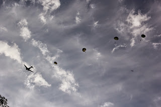 The C-47 dropped some parachutists (the first to drop over Graignes for 70 years)
